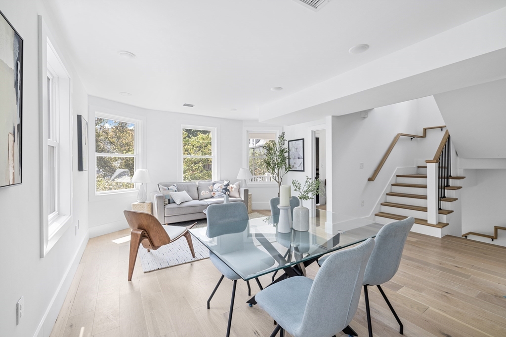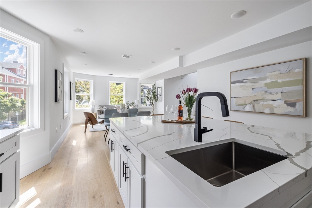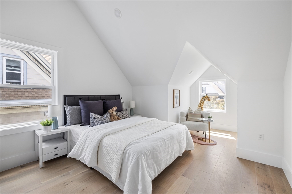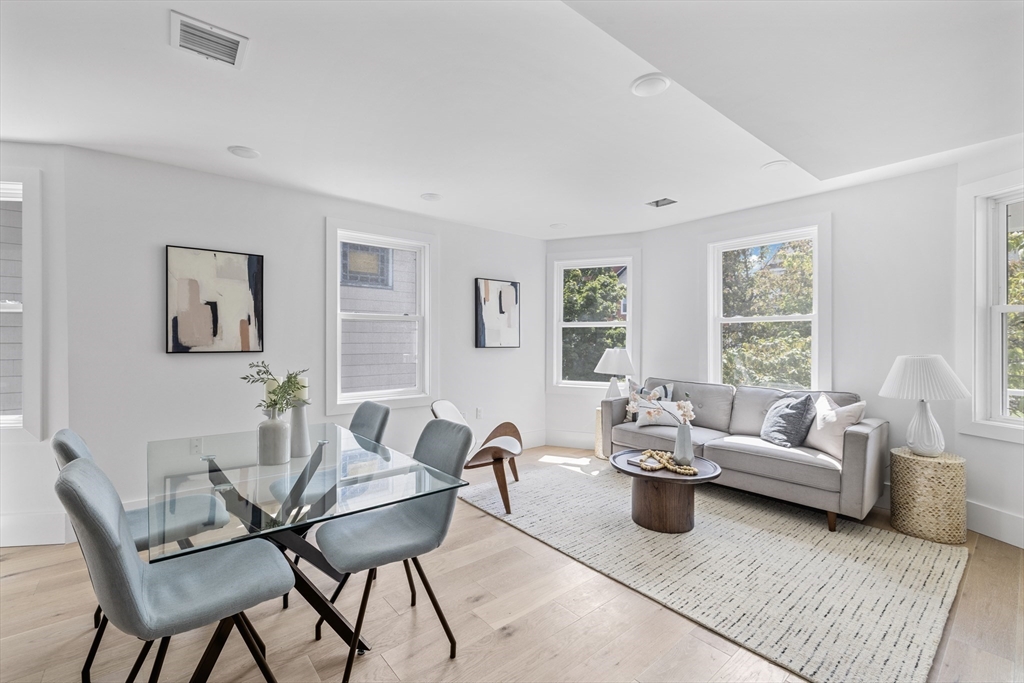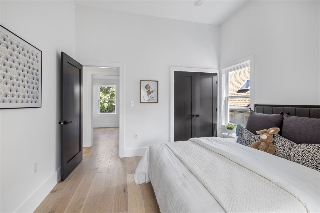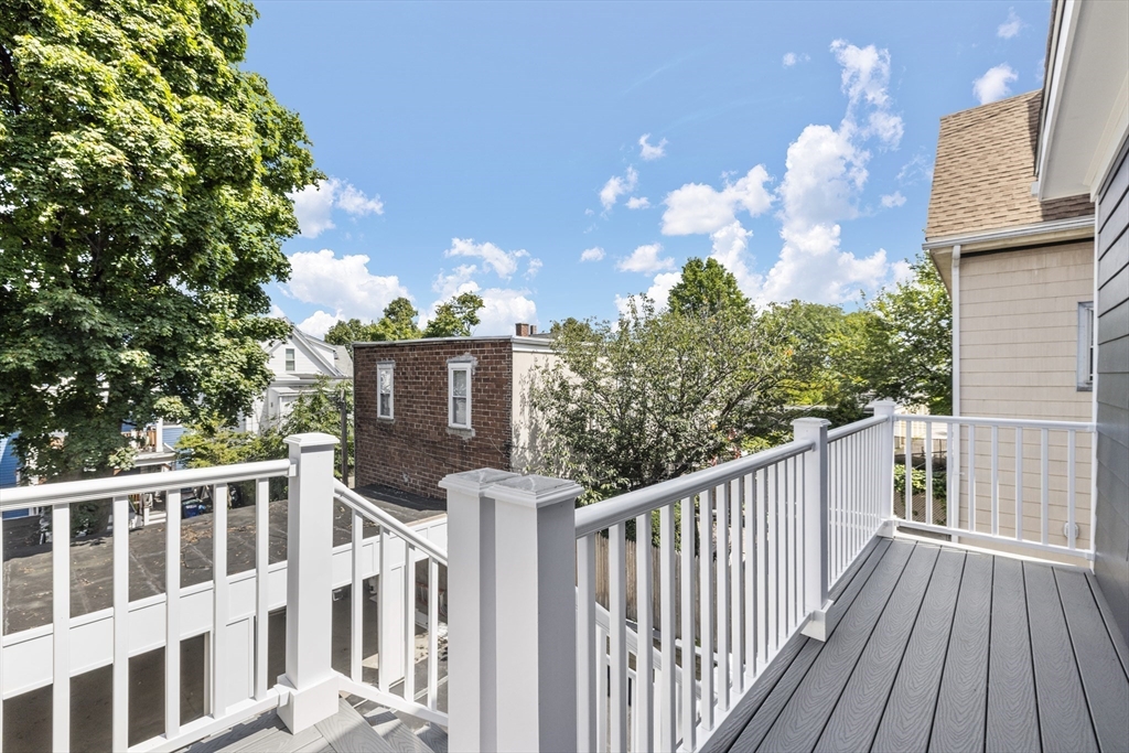Discover luxury living at its finest at 207 Highland Avenue, Unit B. This beautifully renovated 4-bedroom, 3-bathroom unit spans the 2nd and 3rd floors. The state-of-the-art kitchen features quartz countertops and a stunning waterfall island, seamlessly connecting to an open dining and living area. The second floor offers two spacious bedrooms, a stylish full bathroom, a study, and private front and back decks. Upstairs, the third floor features two additional bedrooms and two bathrooms, including the primary suite with a walk-in closet and a lavish bathroom, along with a convenient washer/dryer area. This renovation showcases top-quality materials, including European oak engineered flooring and gorgeous tile, plus central AC for year-round comfort. The unit includes two detached garage parking spaces. Ideally located near Davis Square, Porter Square, the Somerville Community Path, and the Lowell St. Green Line stop, this home offers unmatched convenience and elegance.