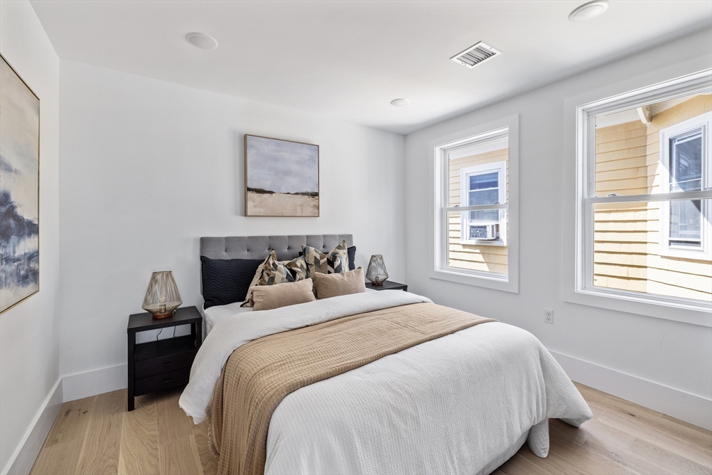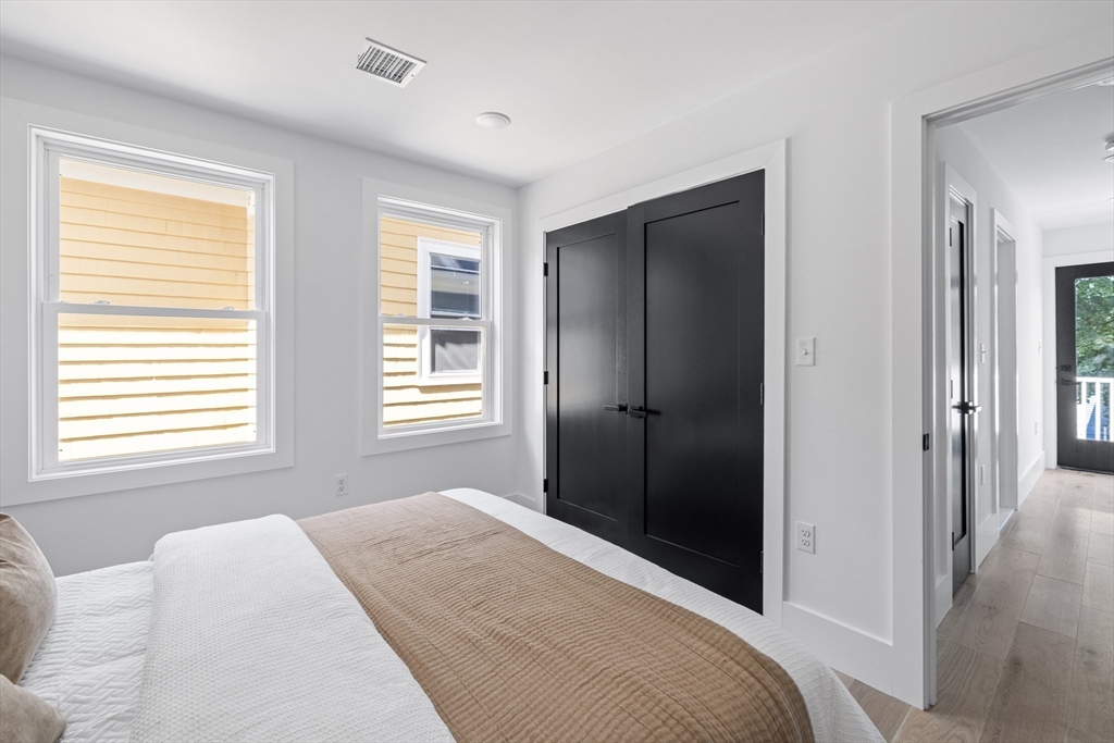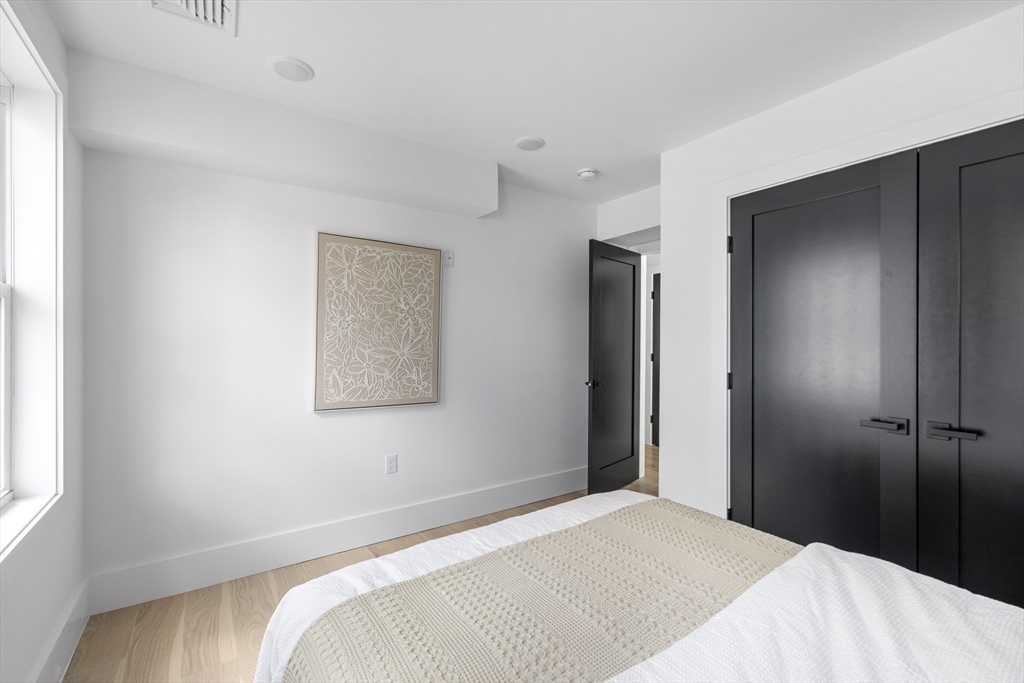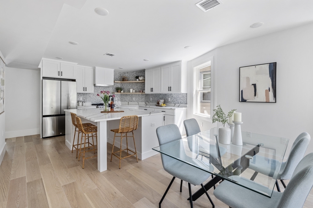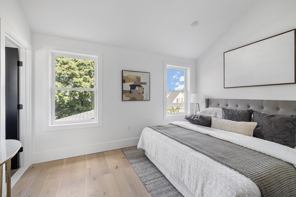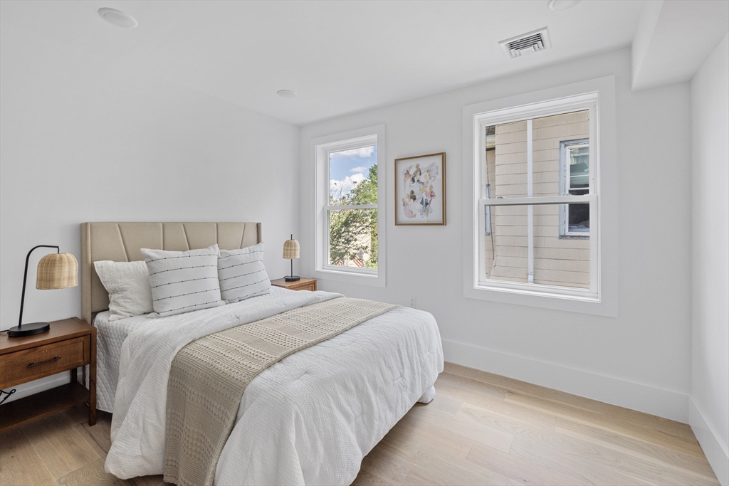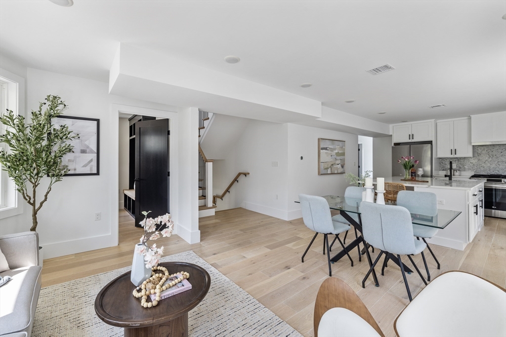 Discover luxury living at its finest at 207 Highland Avenue, Unit B. This beautifully renovated 4-bedroom, 3-bathroom unit spans the 2nd and 3rd floors. The state-of-the-art kitchen features quartz countertops and a stunning waterfall island, seamlessly connecting to an open dining and living area. The second floor offers two spacious bedrooms, a stylish full bathroom, a study, and private front and back decks. Upstairs, the third floor features two additional bedrooms and two bathrooms, including the primary suite with a walk-in closet and a lavish bathroom, along with a convenient washer/dryer area. This renovation showcases top-quality materials, including European oak engineered flooring and gorgeous tile, plus central AC for year-round comfort. The unit includes two detached garage parking spaces. Ideally located near Davis Square, Porter Square, the Somerville Community Path, and the Lowell St. Green Line stop, this home offers unmatched convenience and elegance.
