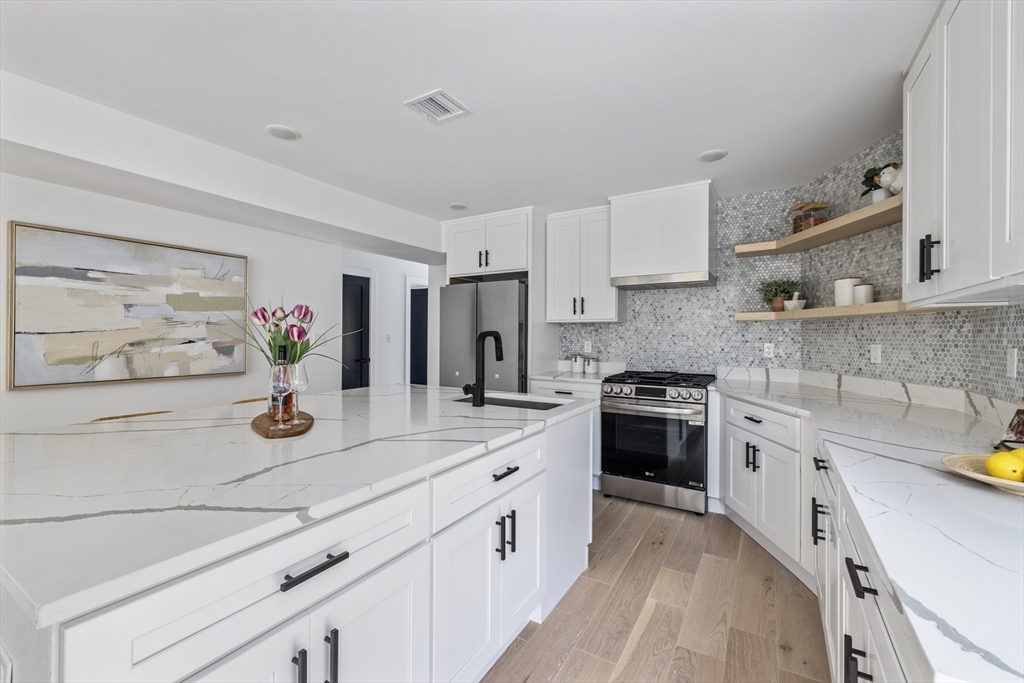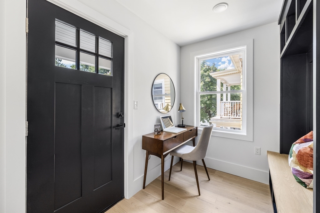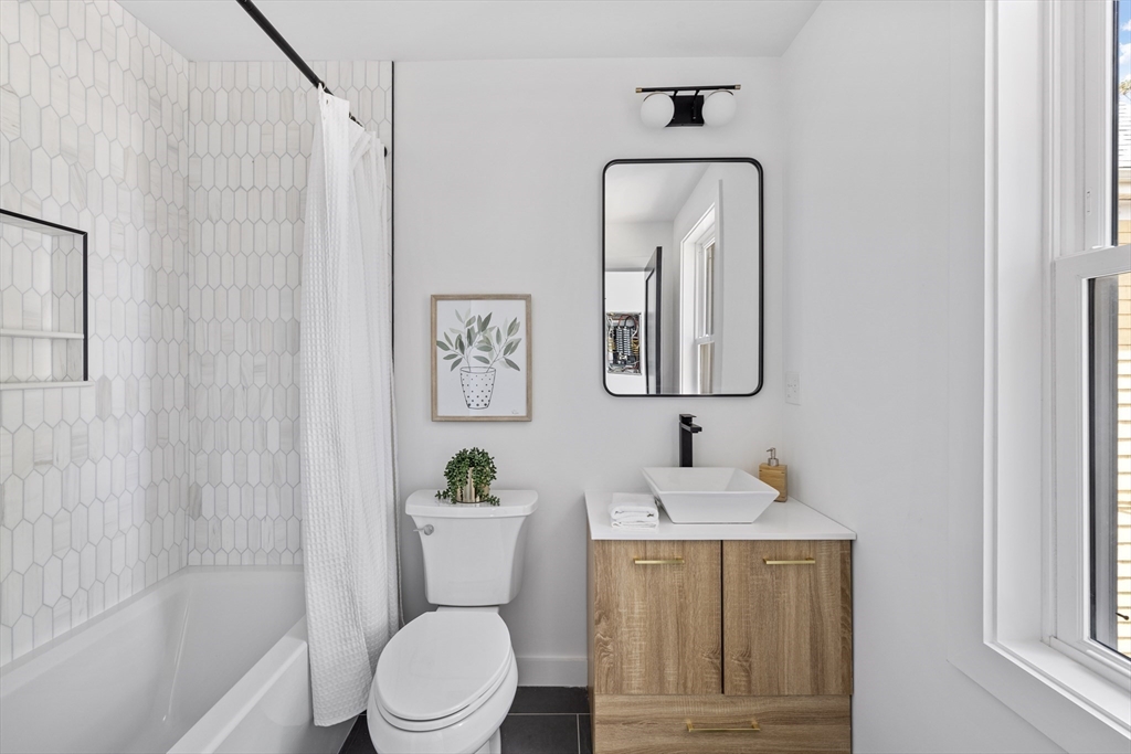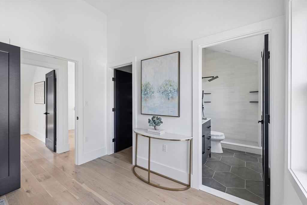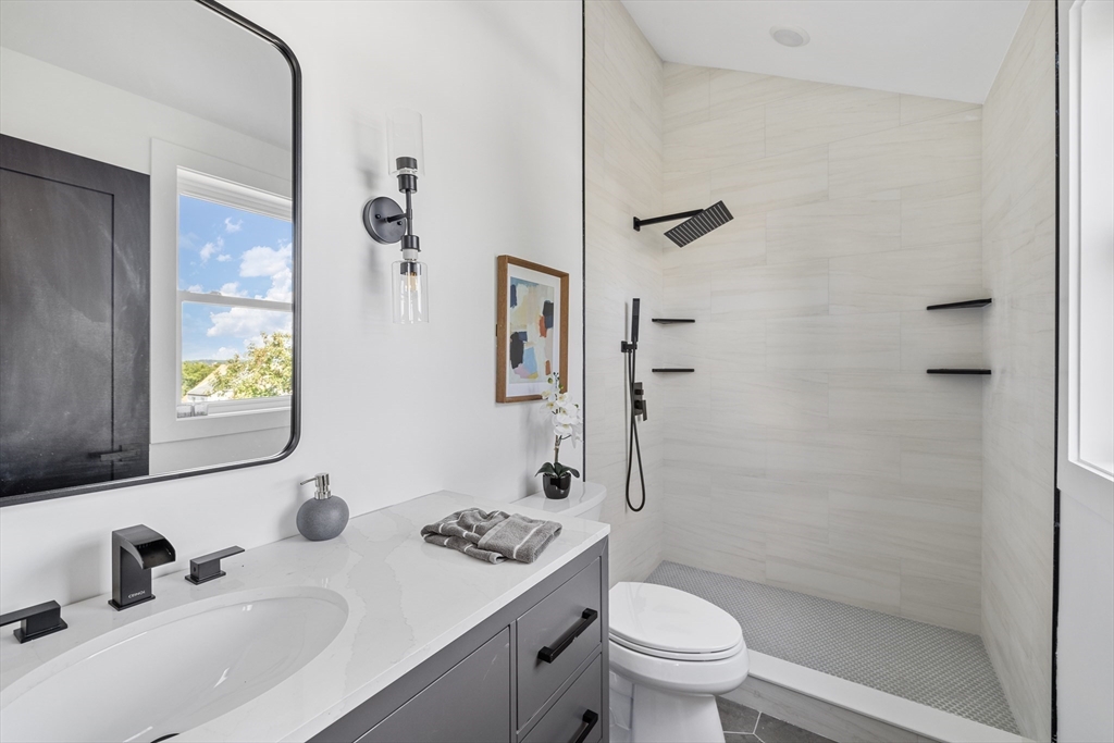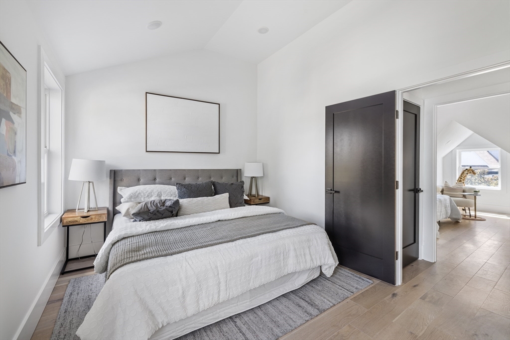 Discover luxury living at its finest at 207 Highland Avenue, Unit B. This beautifully renovated 4-bedroom, 3-bathroom unit spans the 2nd and 3rd floors. The state-of-the-art kitchen features quartz countertops and a stunning waterfall island, seamlessly connecting to an open dining and living area. The second floor offers two spacious bedrooms, a stylish full bathroom, a study, and private front and back decks. Upstairs, the third floor features two additional bedrooms and two bathrooms, including the primary suite with a walk-in closet and a lavish bathroom, along with a convenient washer/dryer area. This renovation showcases top-quality materials, including European oak engineered flooring and gorgeous tile, plus central AC for year-round comfort. The unit includes two detached garage parking spaces. Ideally located near Davis Square, Porter Square, the Somerville Community Path, and the Lowell St. Green Line stop, this home offers unmatched convenience and elegance.